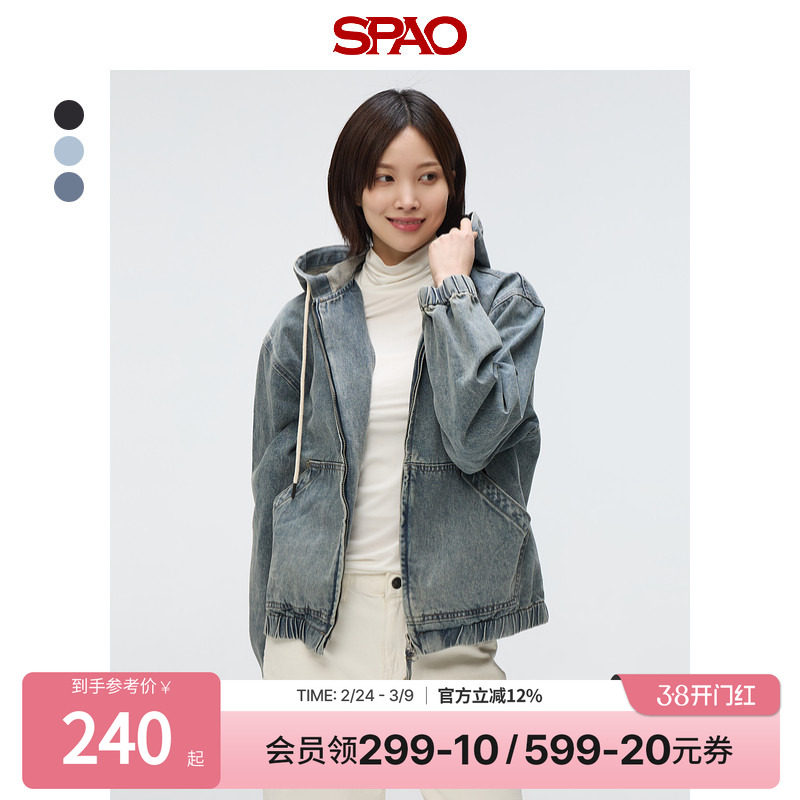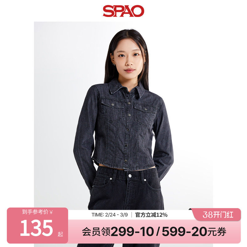 SPAO韩国同款秋冬女士简约复古气质牛仔衬衫外套SPYJE49G01
