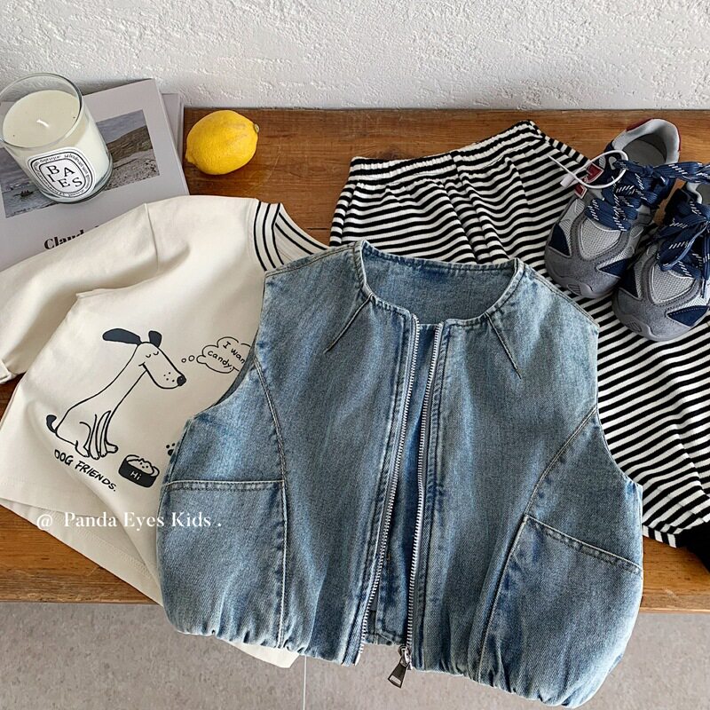 波拉韩国童装男童春季牛仔马甲痞帅百搭儿童复古上衣男女童外套潮