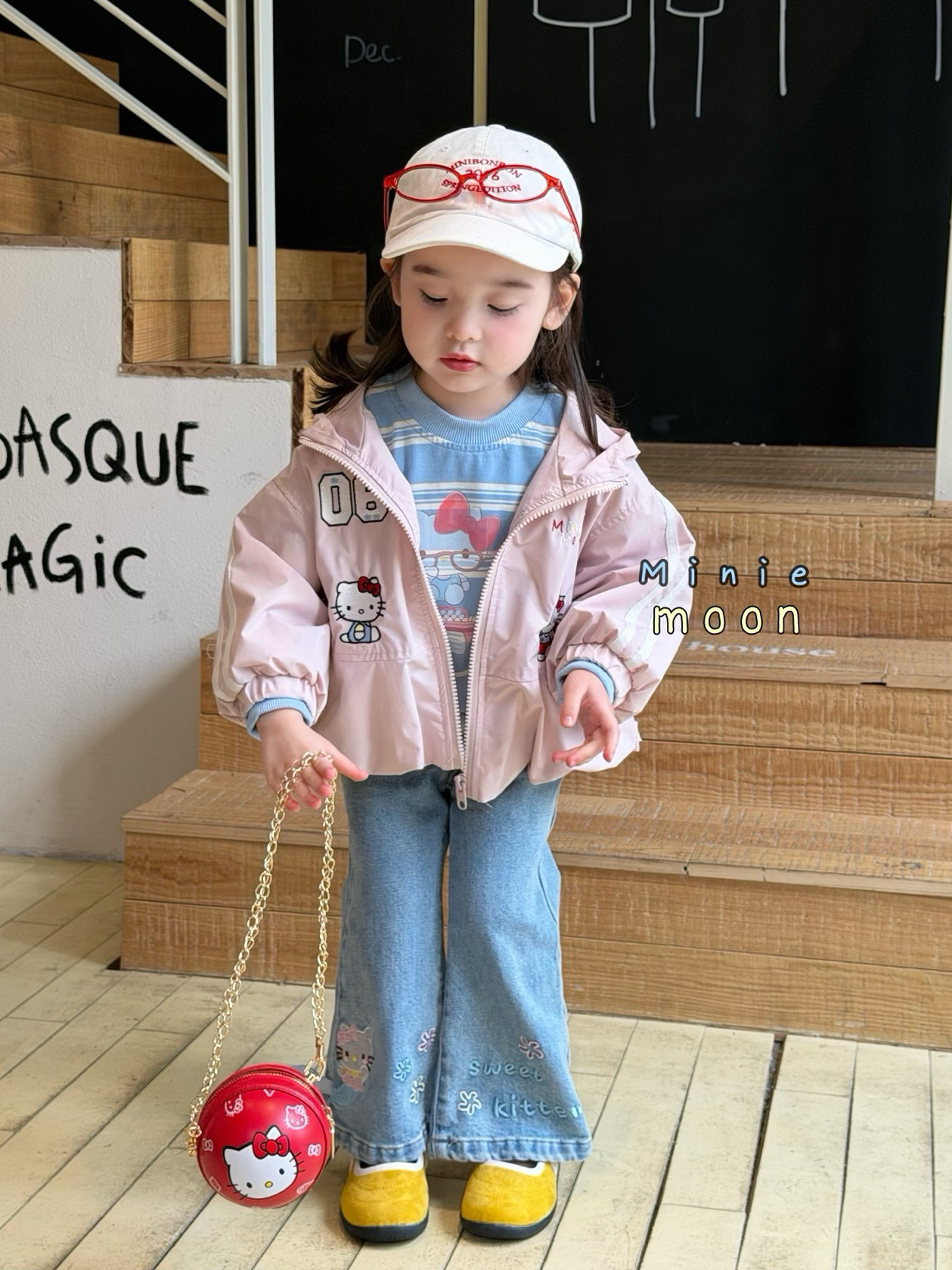凡妈童装26春新款女童小童韩版KT猫刺绣耳朵帽外套卫衣微喇牛仔裤