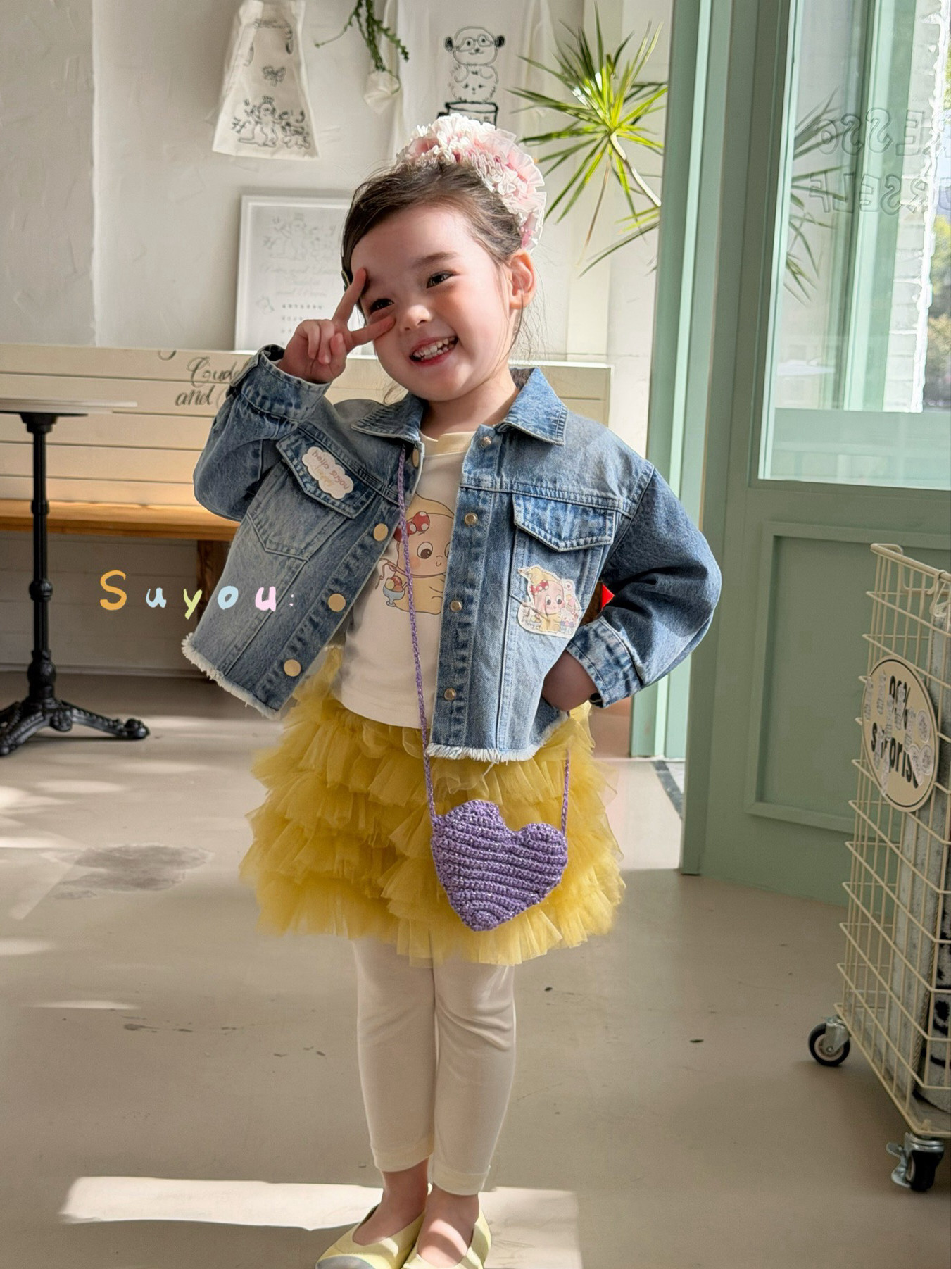 凡妈童装26春新款女童小童韩版卡通贴布牛仔外套T恤网纱裙打底裤