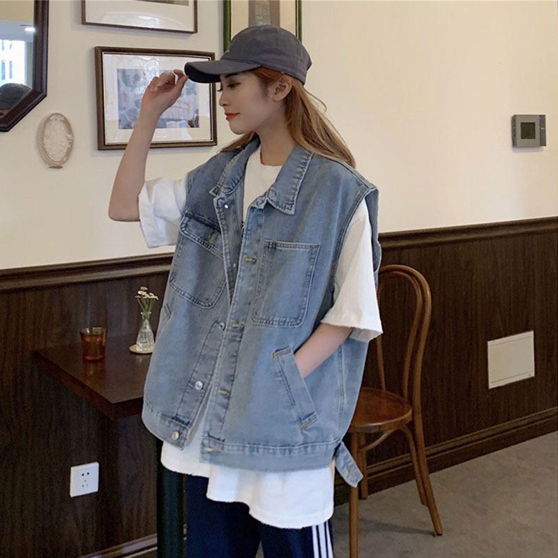 韩国牛仔马甲2026新款坎肩外套女韩版宽松百搭无袖慵懒风马夹背心