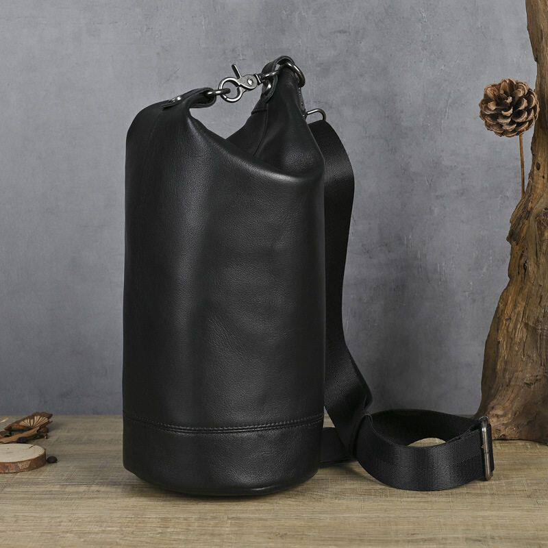 新款韩版胸包男真皮单肩斜挎包个性潮圆筒包复古男士头层牛皮背包