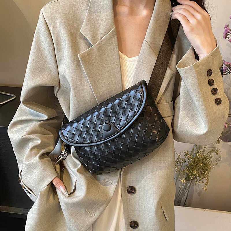 外贸批发宽肩带腰包2025新款韩版胸包手工编织女包休闲单肩小