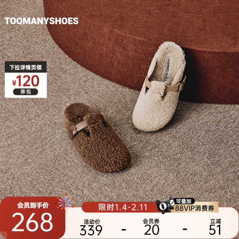 Toomanyshoes肉松包毛毛鞋冬半拖女外穿厚底保暖勃肯