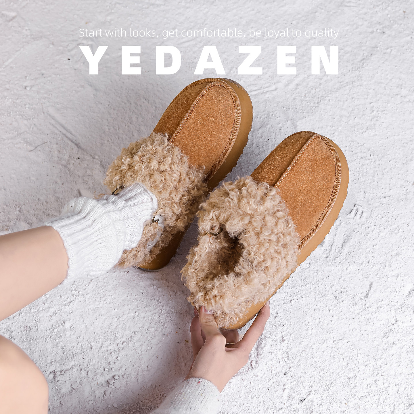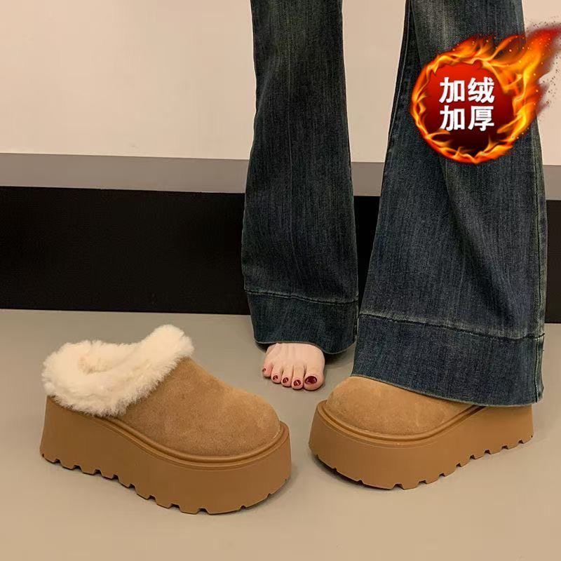 小土豆勃肯鞋加绒2025新款秋冬包头半拖厚底雪地靴毛毛拖鞋女外穿
