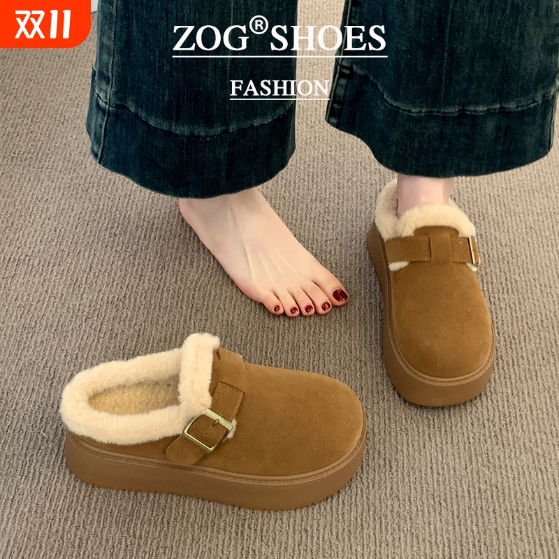 油叽叽~加绒勃肯鞋毛毛拖鞋女外穿秋冬包头半拖厚底小土豆雪地靴