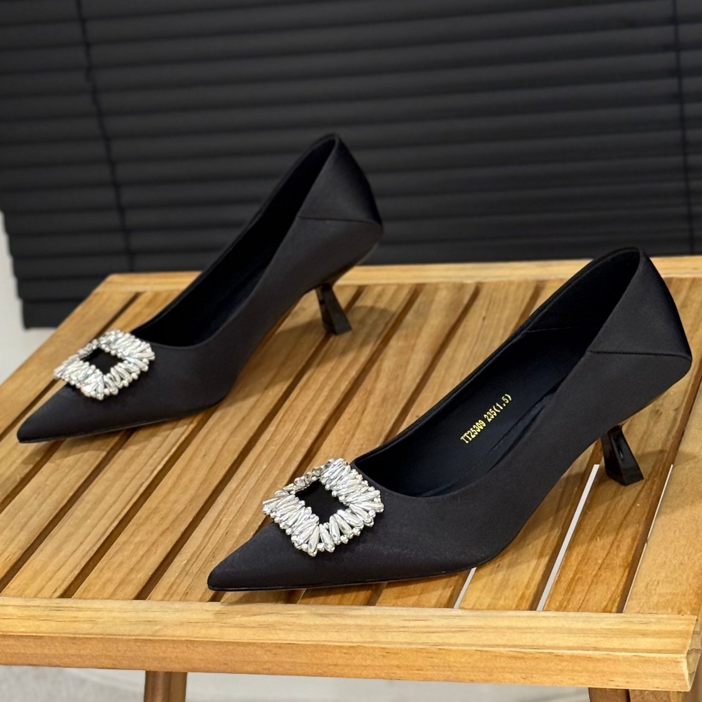5cm绒面水钻方扣细跟尖头单鞋女鞋2025春秋新款气质名媛高跟鞋