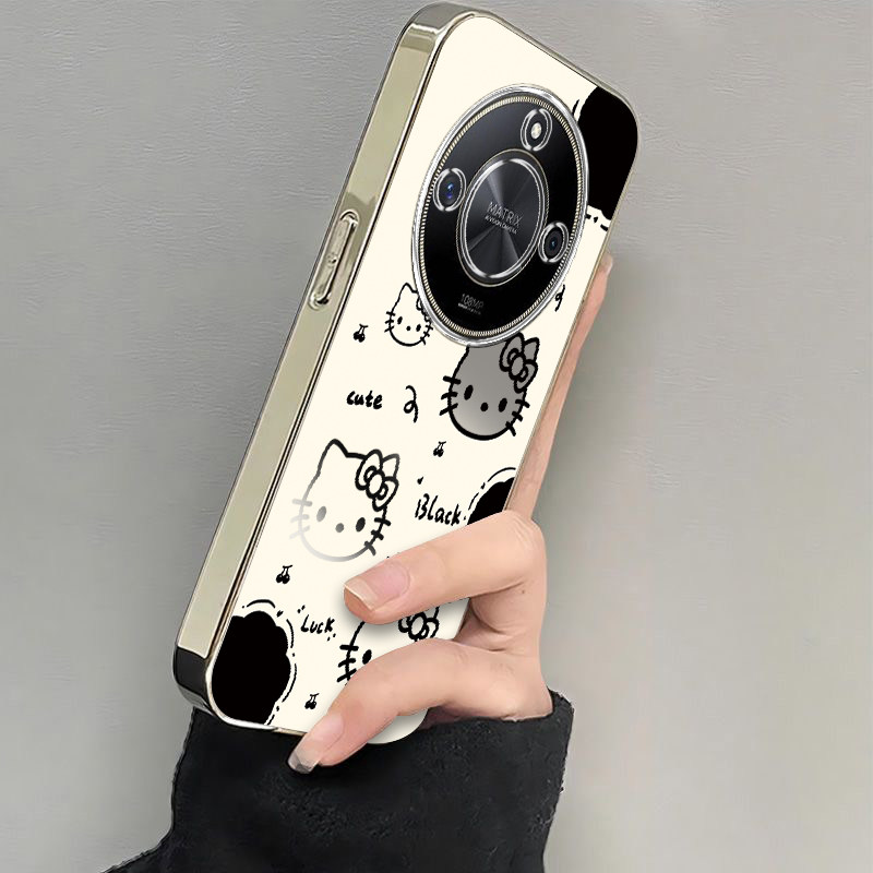 适用荣耀X50手机壳HONORX50保护套X5O华为50X新款叉五零专用可爱软电镀全包防摔网红曲屏曲面屏女生黑白kt猫