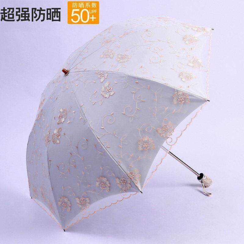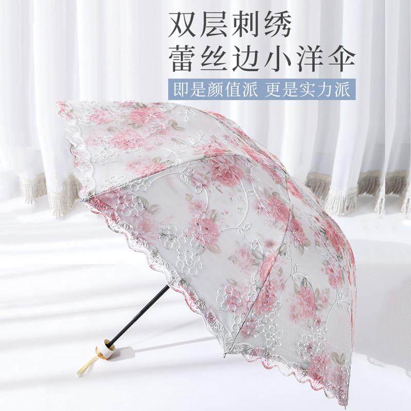 太阳伞防晒防紫外线蕾丝刺绣黑胶公主晴雨两用亦辰双层遮阳伞女夏