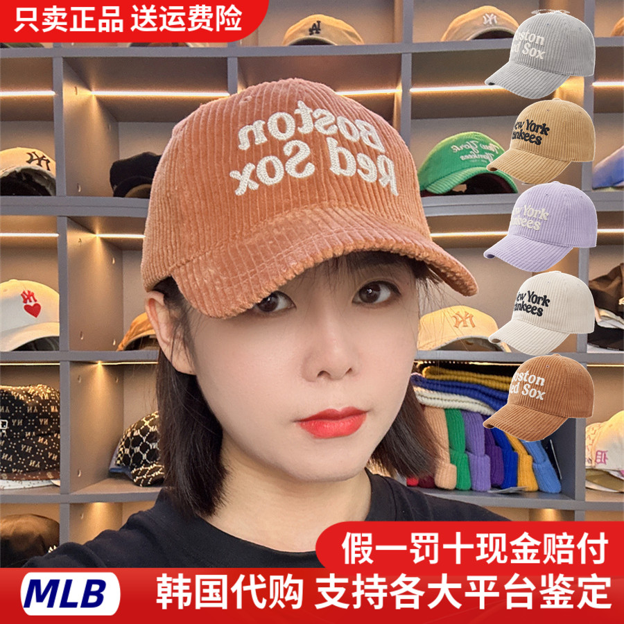 正品MLB帽子2022新款秋冬灯芯绒条绒NY洋基队棒球帽保暖鸭舌帽女