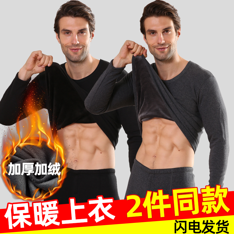 加绒上衣男士加厚保暖衣修身打底单衣抗寒中年棉毛衫内衣秋衣冬季