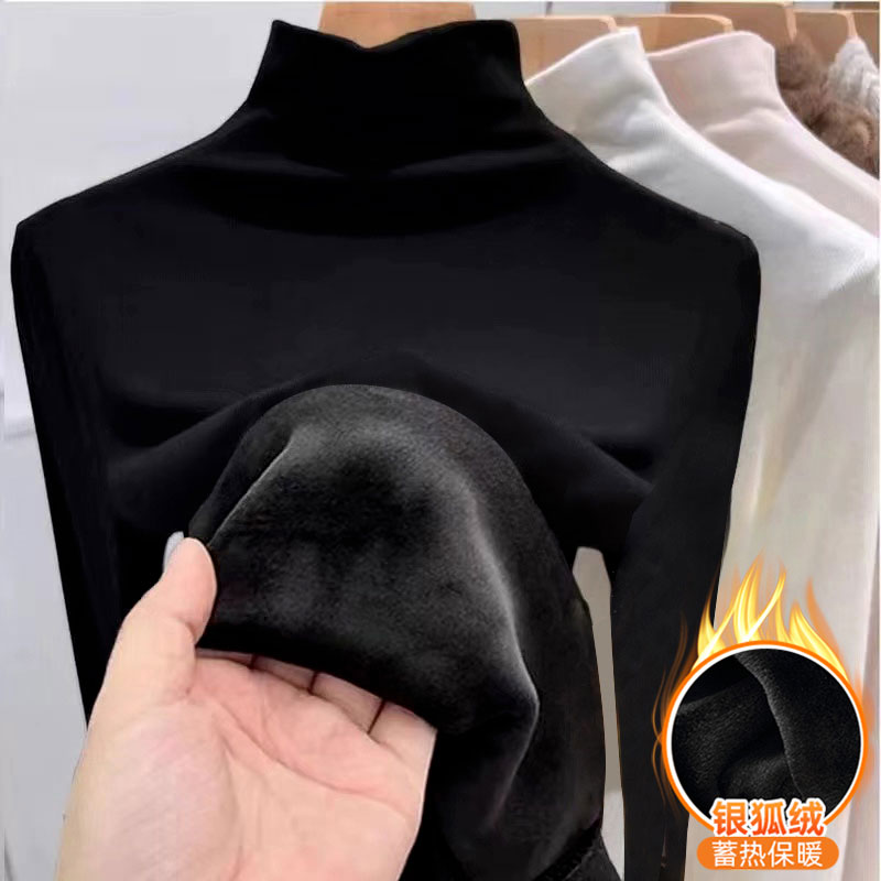 Xcf秋冬加绒加厚同色半高领打底衫女修身显瘦内搭上衣外穿男款