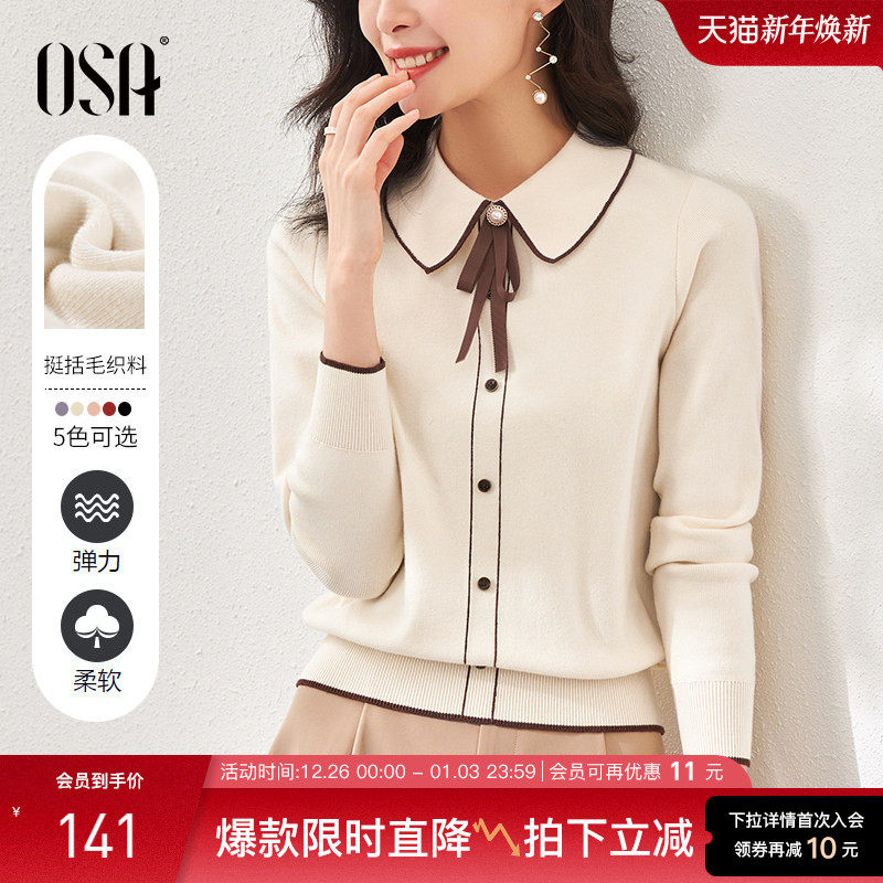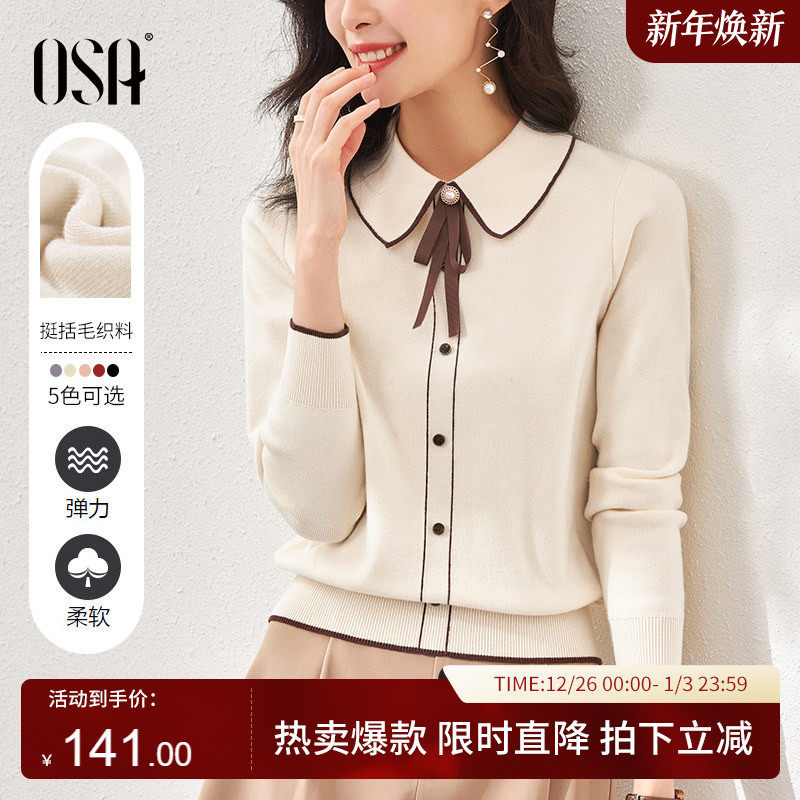 OSA欧莎千金小香风减龄内搭娃娃领针织衫秋冬2025年新款打底毛衣