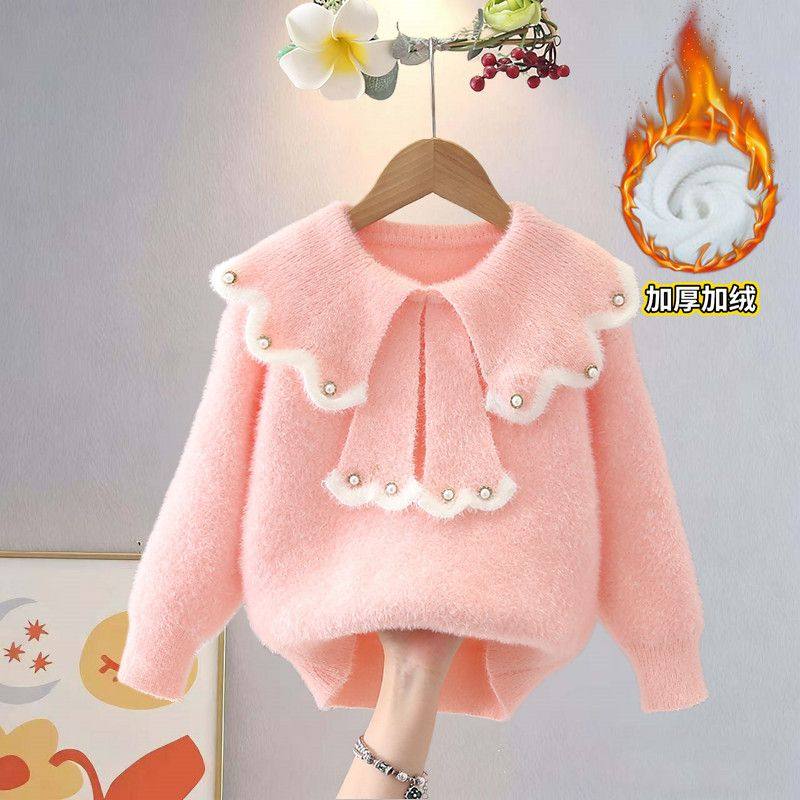 秋冬季女童毛衣2025新款水貂绒洋气娃娃领中大童加厚儿童打底衫潮