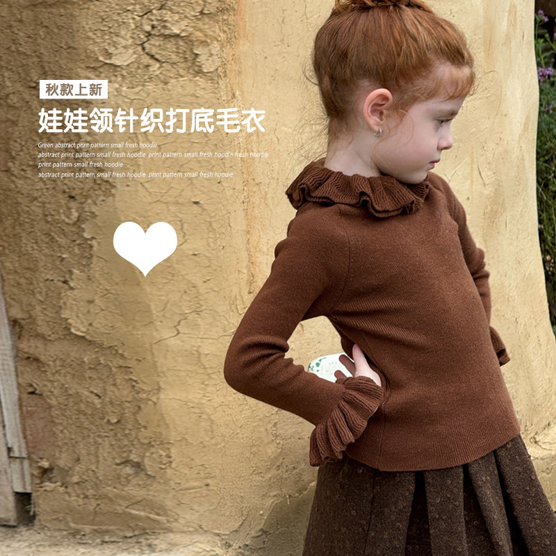 女童娃娃领针织打底衫毛衣2025新款洋气时髦儿童女宝宝荷叶边内搭