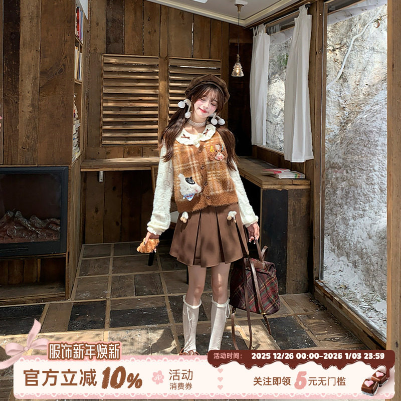 织物猪 焦糖松饼 美拉德穿搭套装女秋冬叠穿毛衣外套娃娃领打底衫