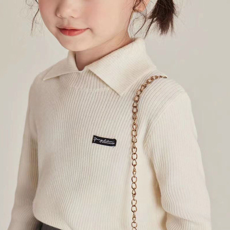 女童娃娃领纯色打底毛衣2025秋装新款儿童针织衫打底衫童装女上衣