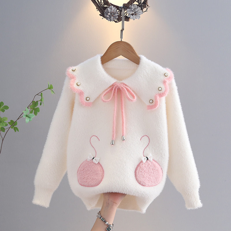 女童秋冬毛衣2025新款洋气娃娃领水貂绒针织衫甜美百搭儿童打底衫