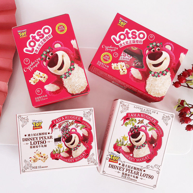 迪士尼草莓熊蔓越莓牛轧糖添加蔓越莓果粒儿童休闲零食结婚喜糖礼