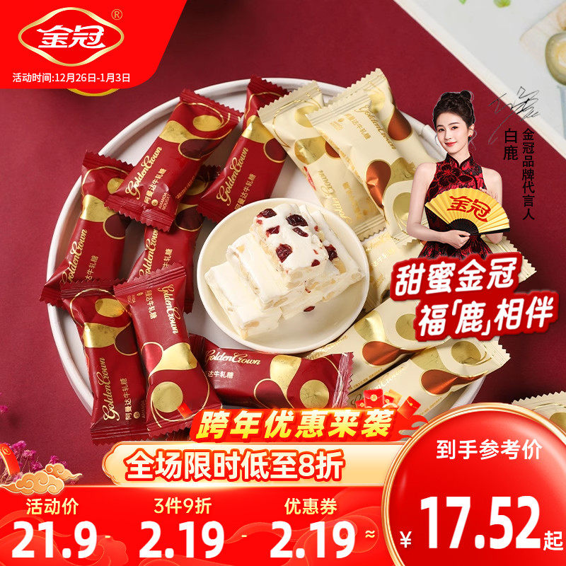 金冠蔓越莓牛轧糖软糖花生原味混合装1斤喜糖果过年货小零食批发