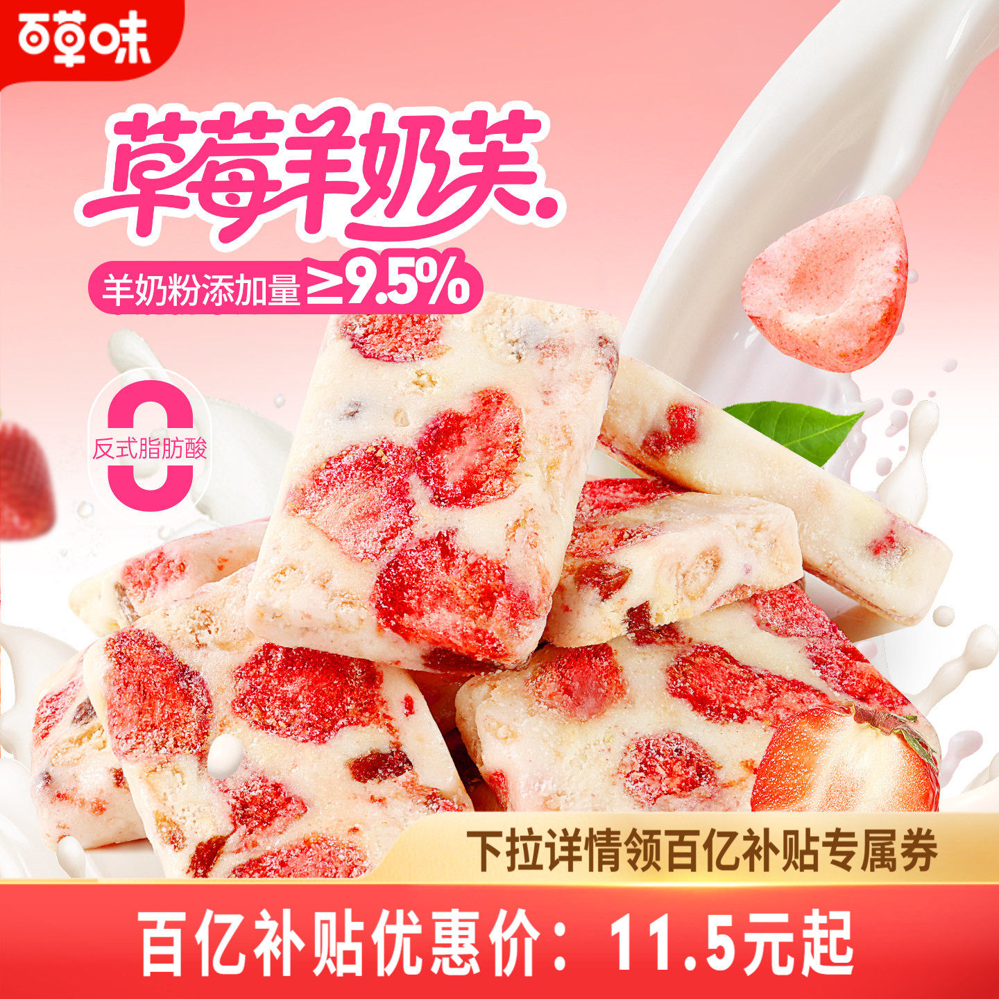 百草味草莓羊奶芙休闲零食饼干蔓越莓雪花酥牛轧糖传统糕点心食品