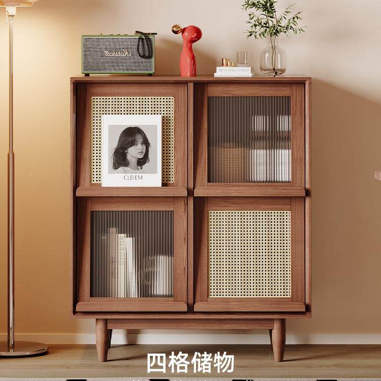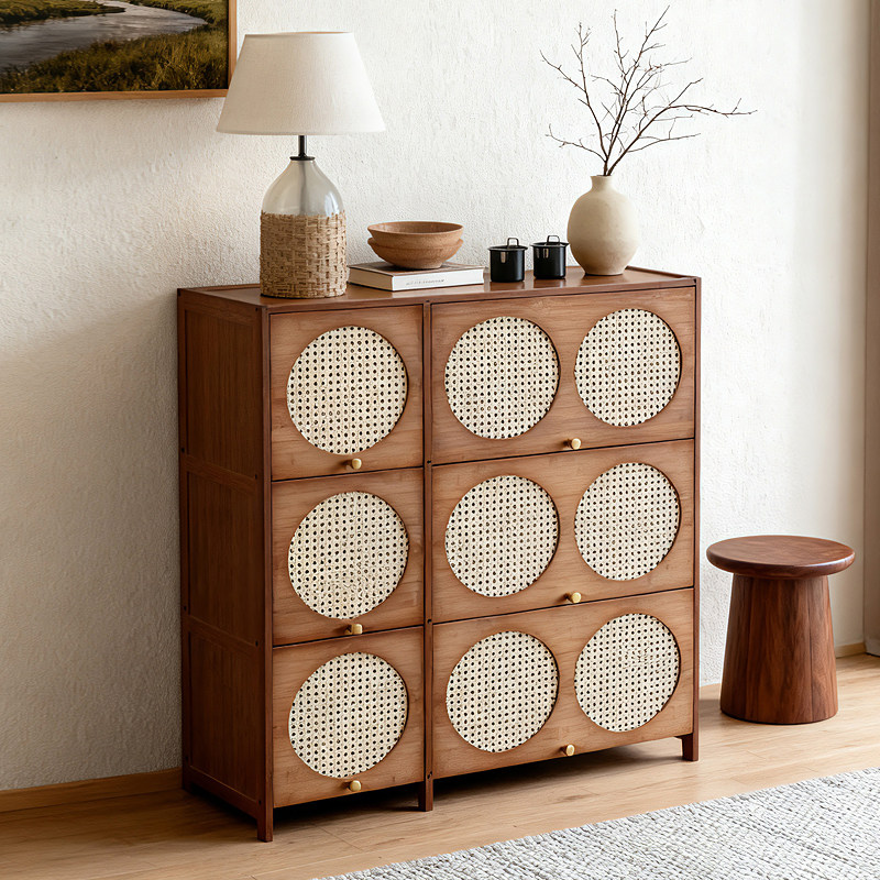 复古美式客厅柜简约餐边柜储物柜藤编收纳边柜斗柜玄关柜阳台柜子