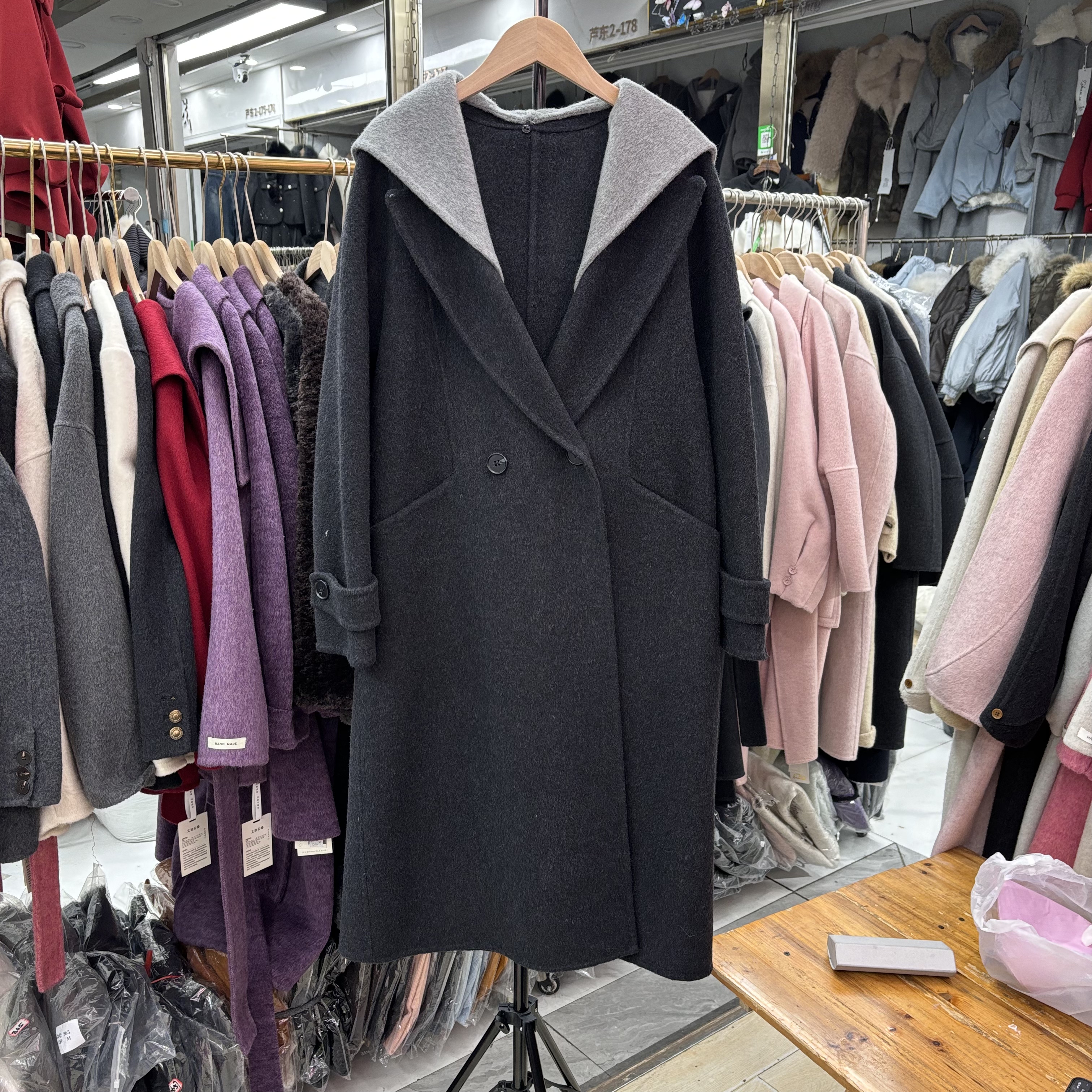 韩国东大门连帽双面羊毛大衣女中长款高级感小个子宽松新毛呢外套