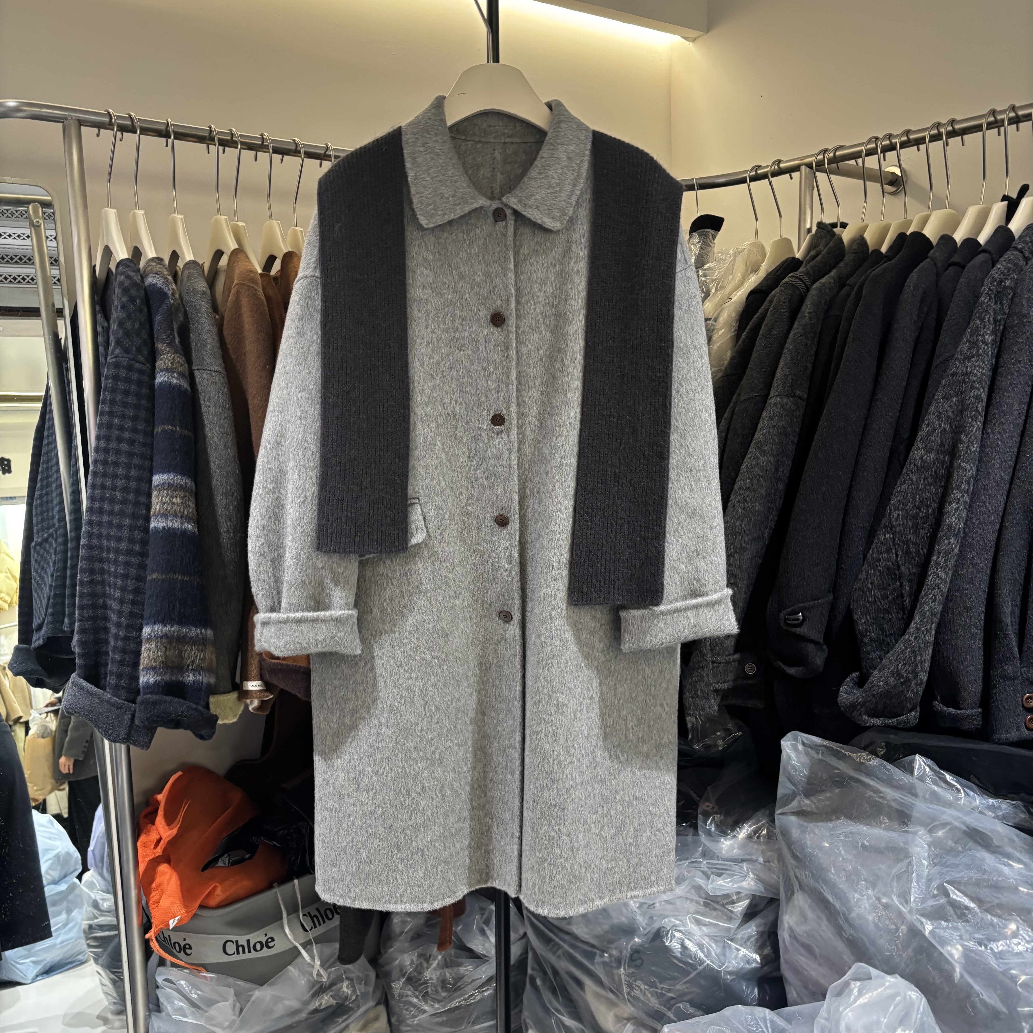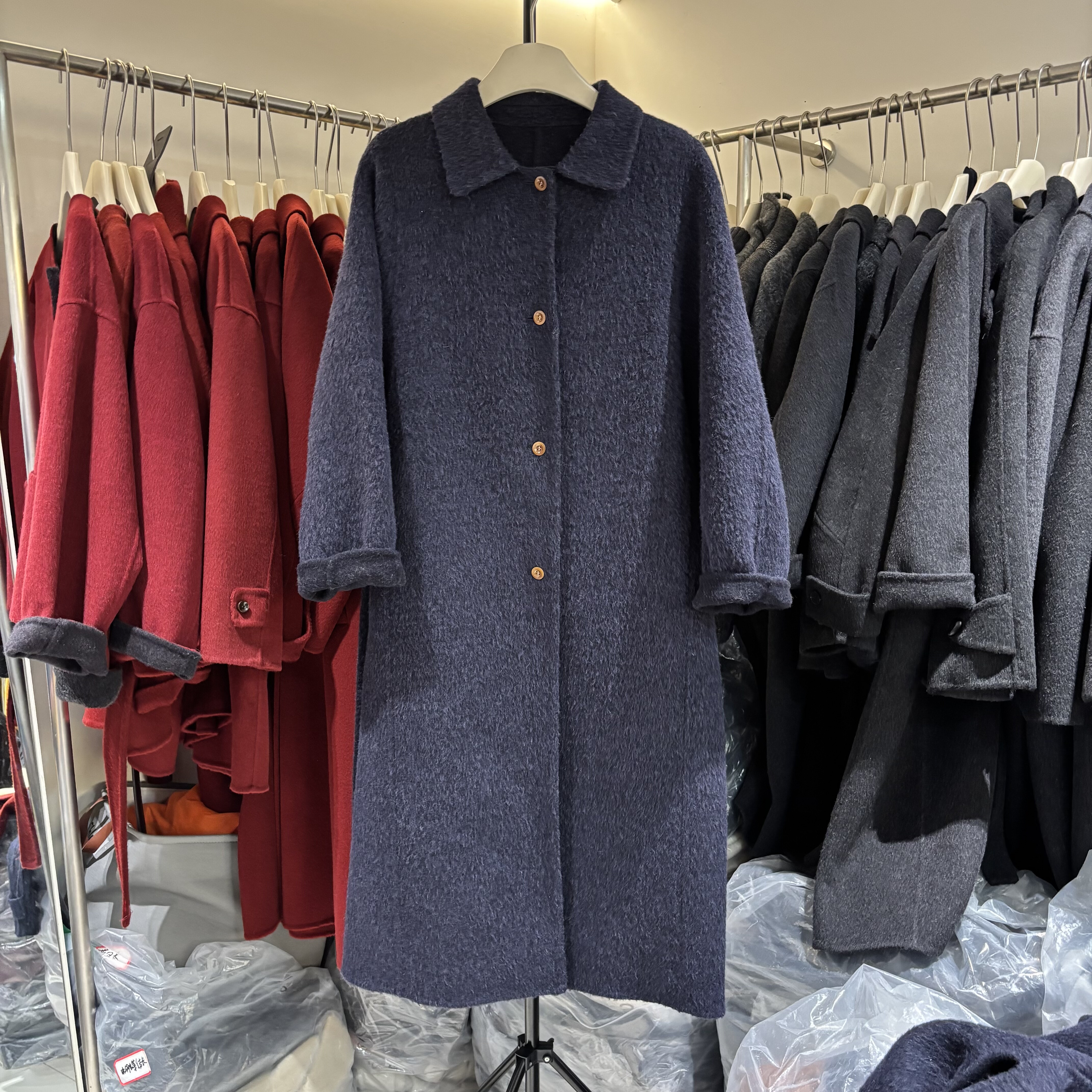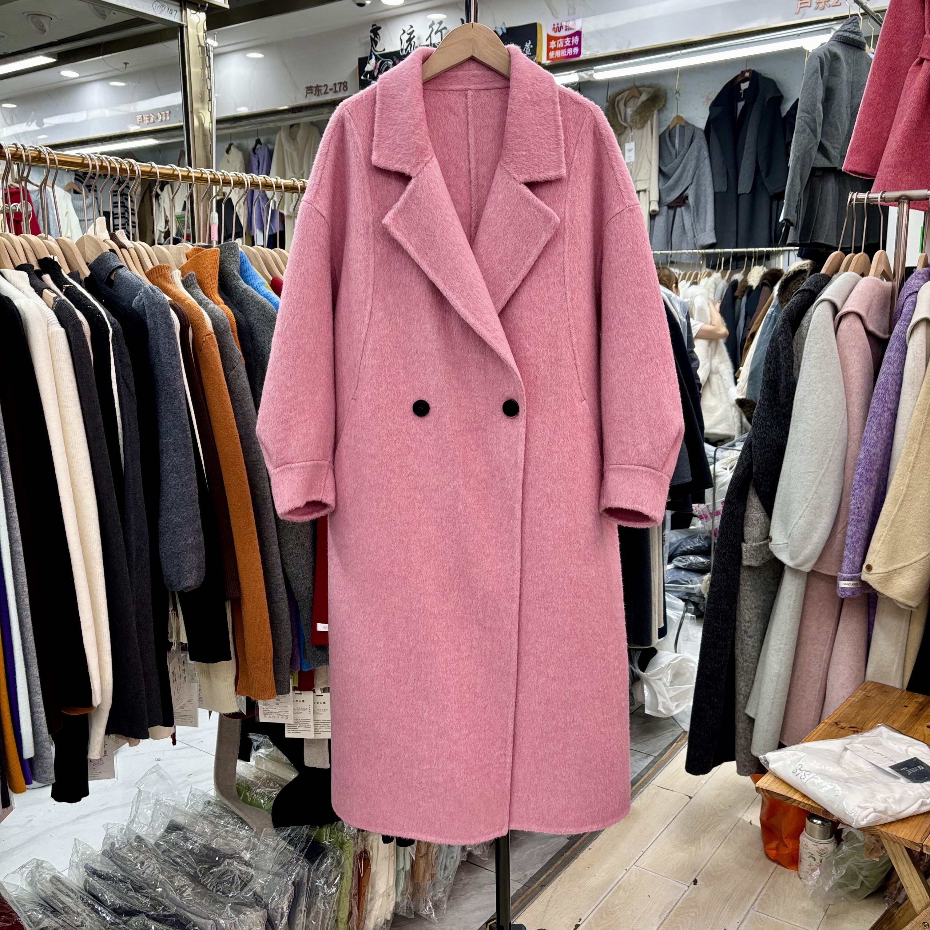 2025秋冬新款韩宽松时尚娃娃领双面羊毛大衣女中长款毛呢外套