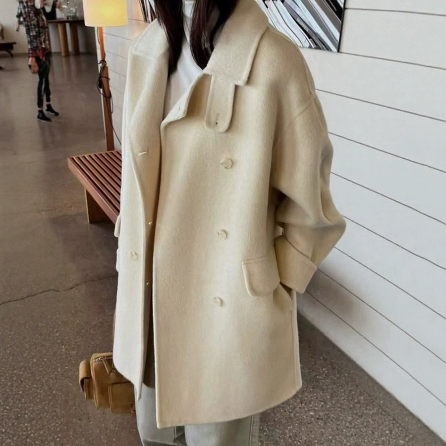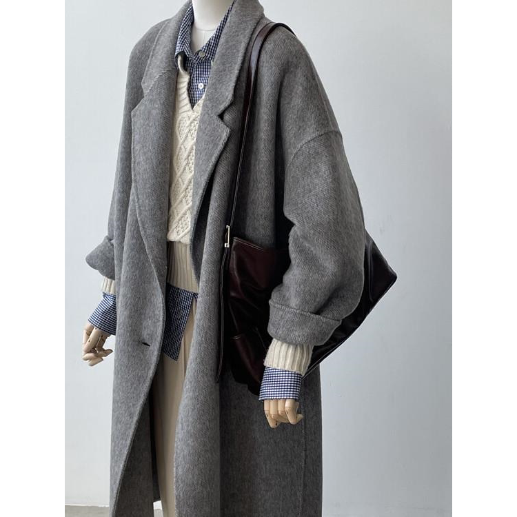 韩国东大门2026秋冬新款双面羊绒大衣女中长款宽松羊毛呢外套