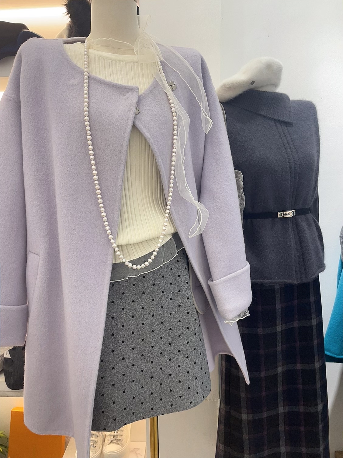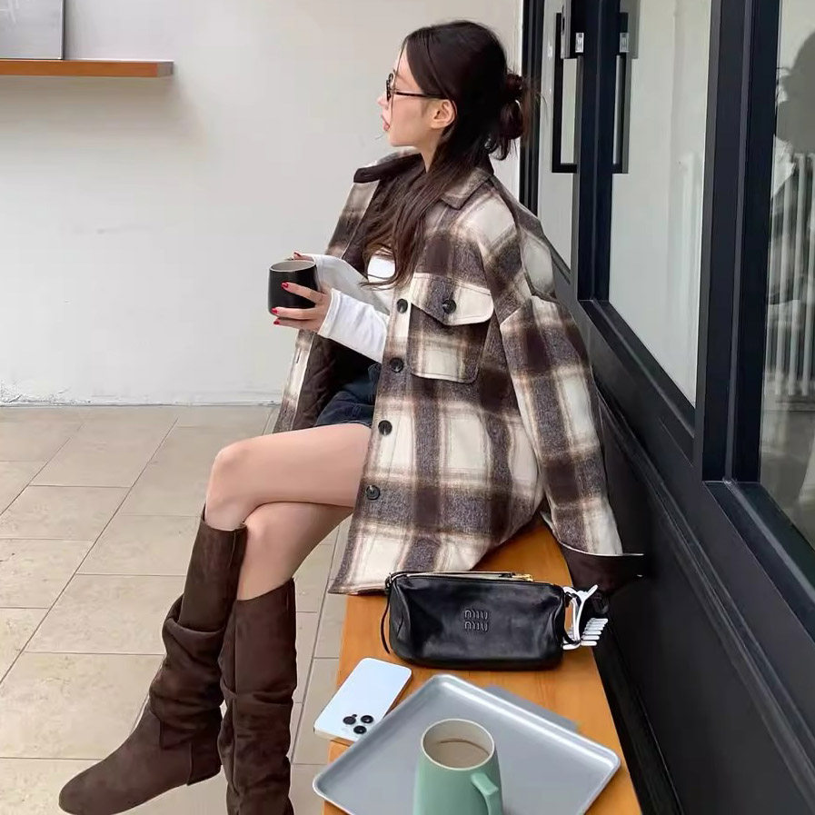 - 格纹毛呢大衣