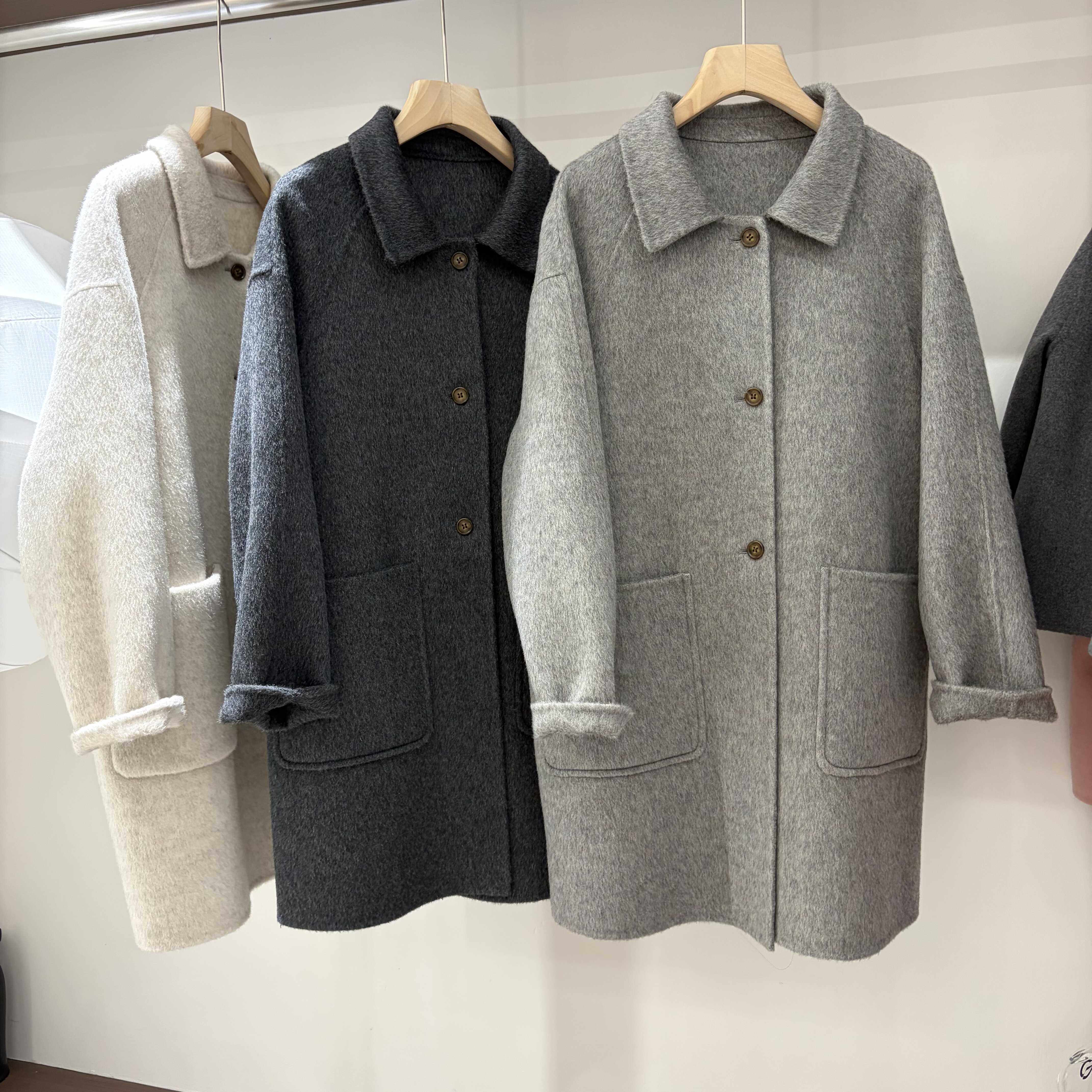 韩国双面羊绒大衣女2025年秋冬灰色新款宽松中长款高端羊毛呢外套