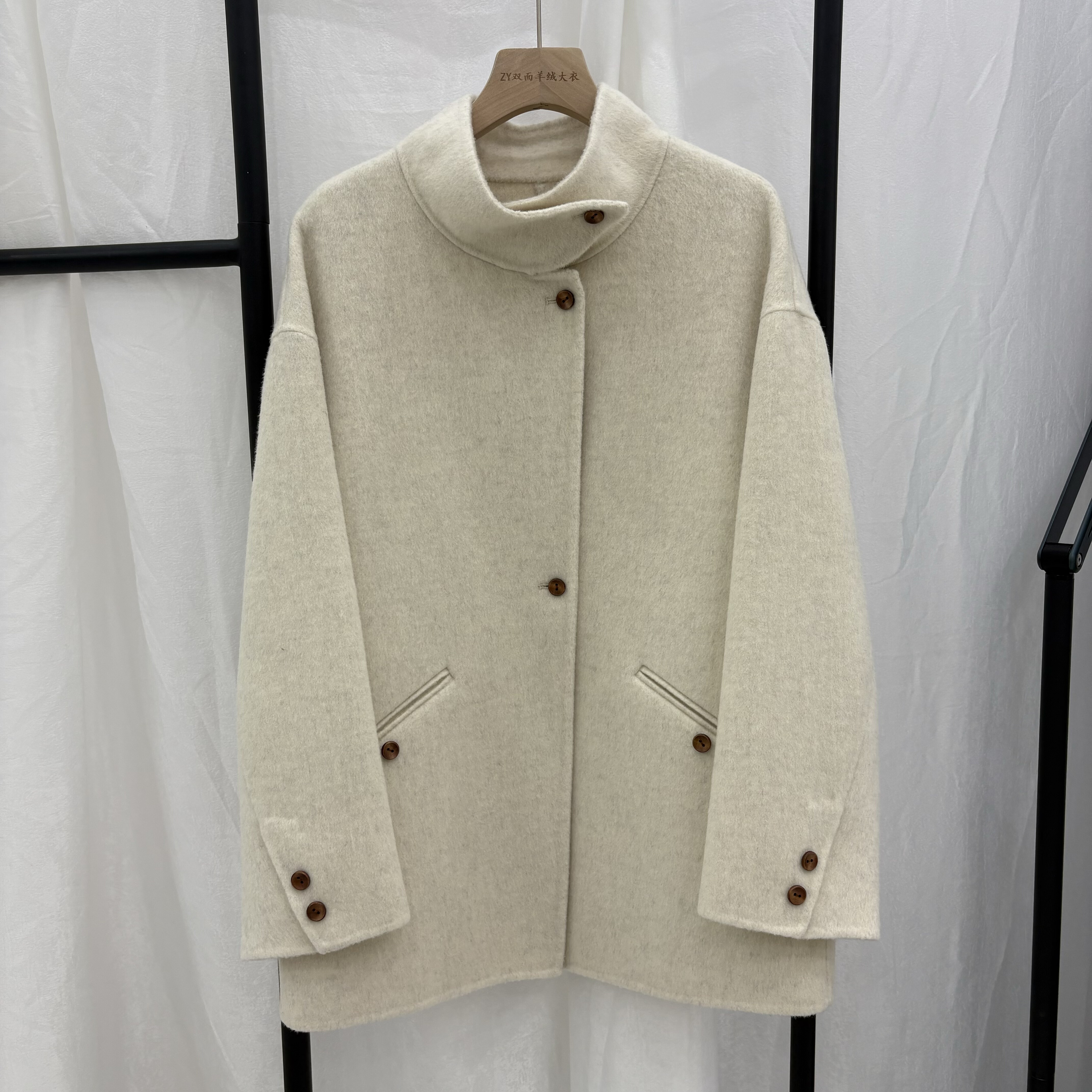 韩国立领双面羊绒大衣女中长款2025秋冬宽松百搭减龄保暖羊毛外套