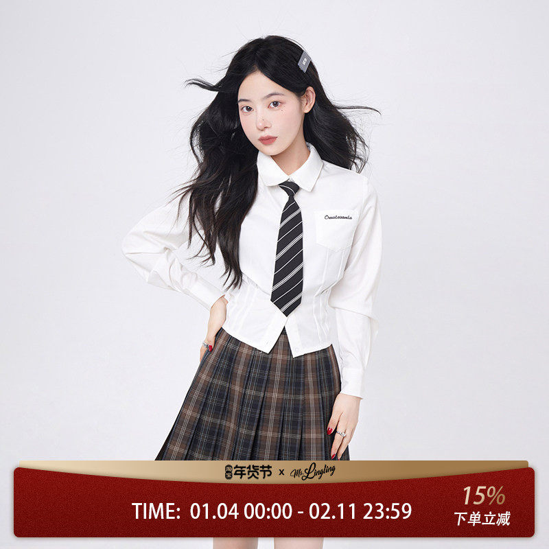 jk套装辣妹收腰长袖衬衫女纯欲修身显瘦学院风气质白衬衣夏季新款