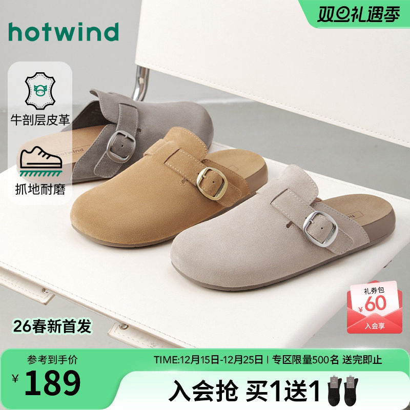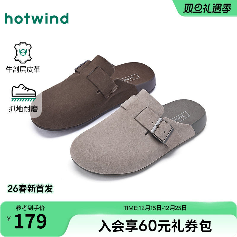 热风男鞋2026年春季新款男士时尚单鞋户外勃肯鞋子复古包头拖鞋