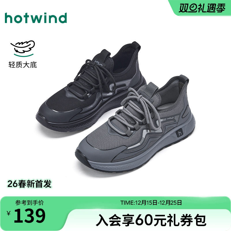 热风男鞋2026年春季新款男士时尚休闲鞋运动户外厚底鞋黑色慢跑鞋