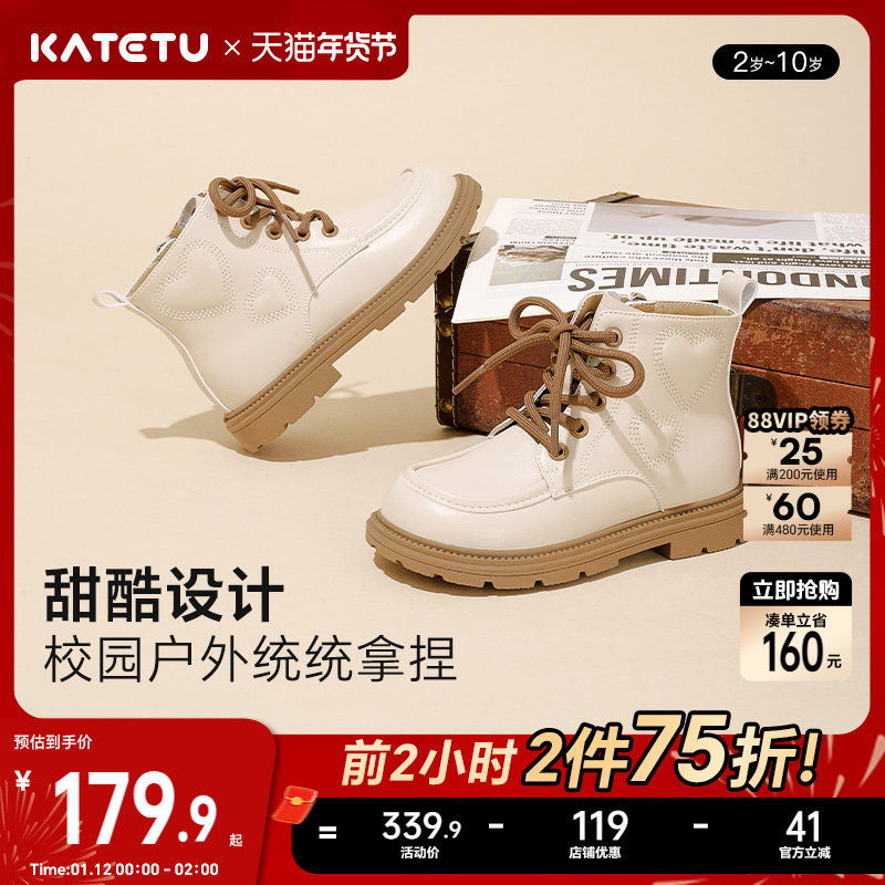 卡特兔童鞋儿童马丁靴男童2026春季新款软底防滑宝宝靴子女童皮靴