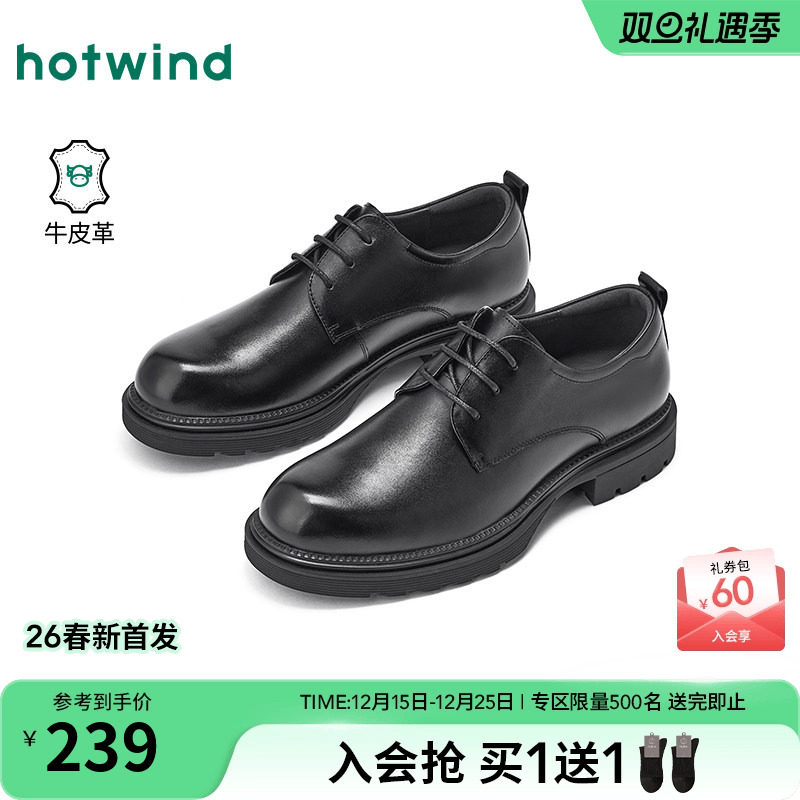 热风男鞋2026年春季新款男士时尚休闲单鞋黑色德比鞋商务正装皮鞋
