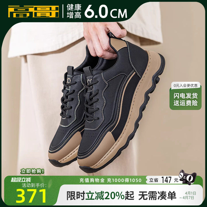 高哥增高鞋厚底男士春季休闲鞋百搭头层牛皮男鞋轻便内增高运动鞋