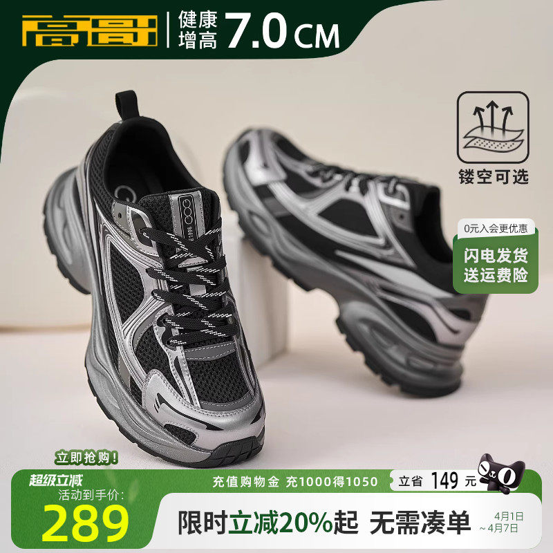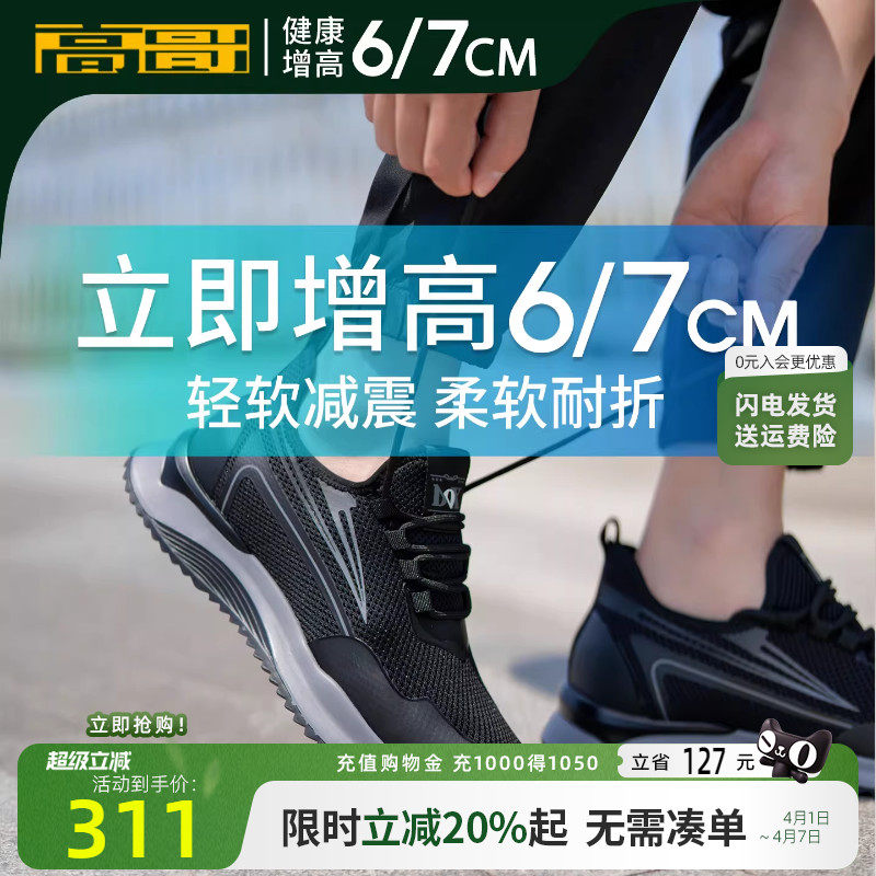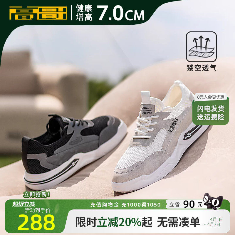 高哥增高运动鞋网面休闲鞋男潮百搭轻便男鞋子春季隐形内增高板鞋