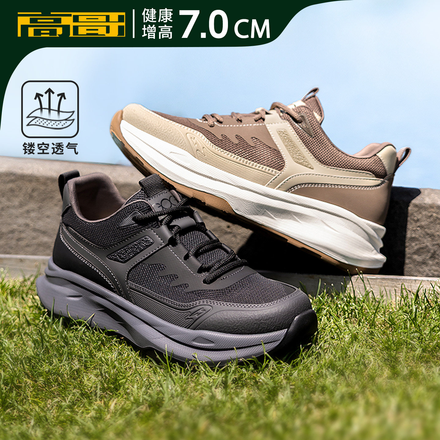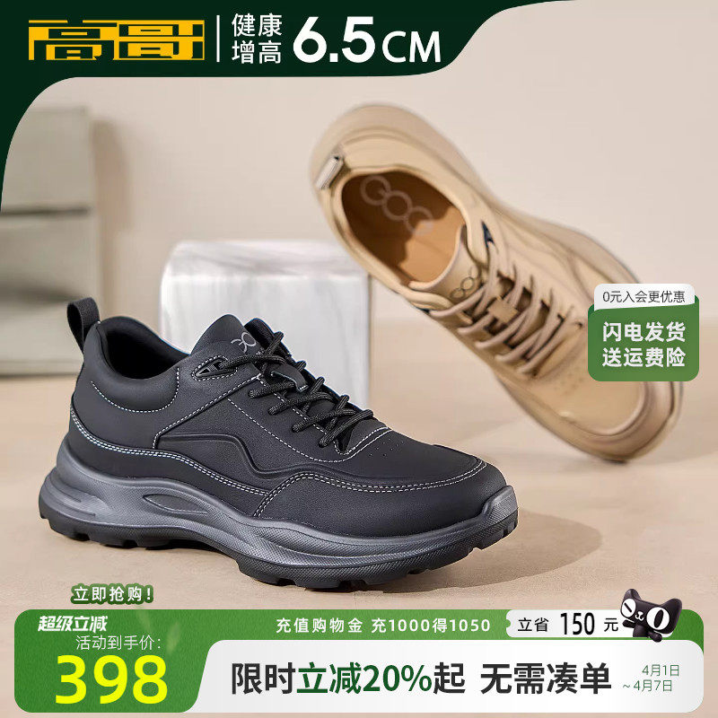 高哥增高休闲鞋厚底新款牛皮男鞋轻便徒步户外鞋男士内增高运动鞋