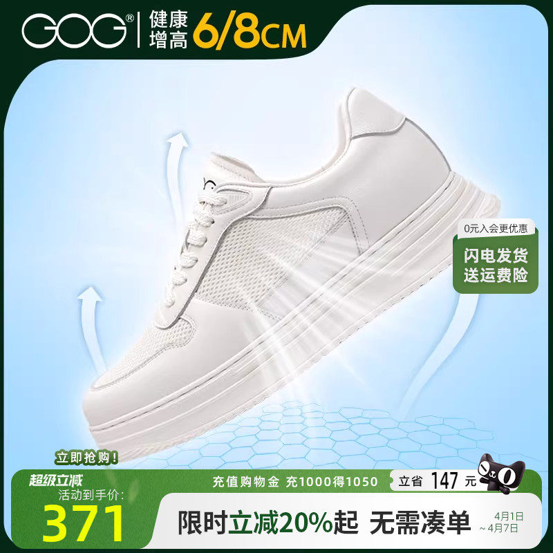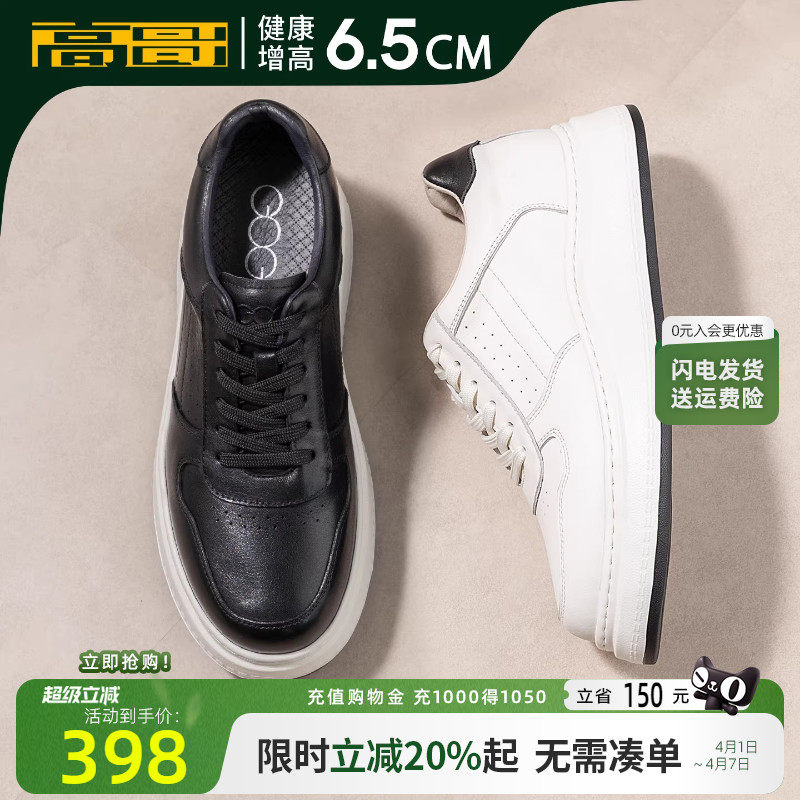 高哥增高小白鞋真皮厚底休闲男鞋子春季轻便运动鞋男士内增高板鞋