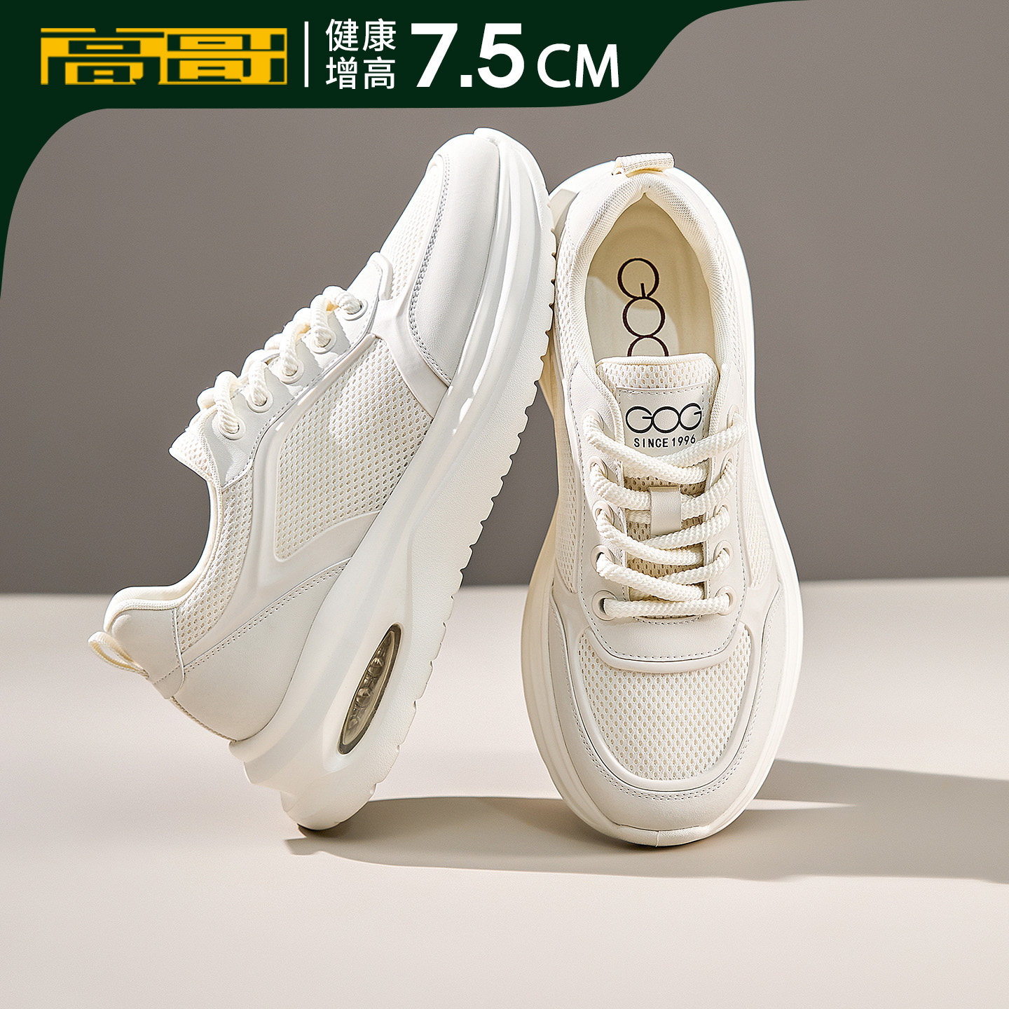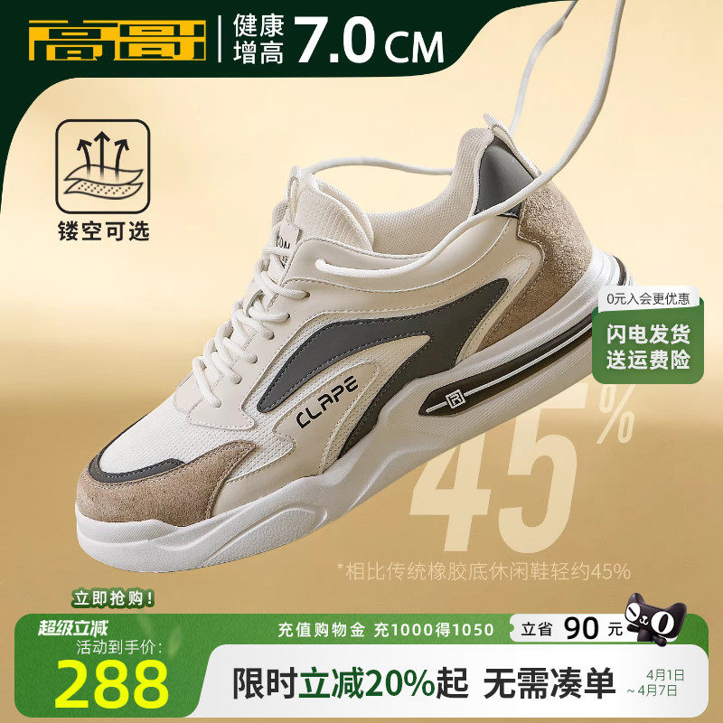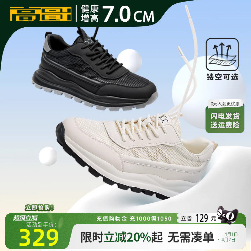 高哥增高男鞋新款跑步鞋男超轻减震厚底内增高网面运动休闲小白鞋