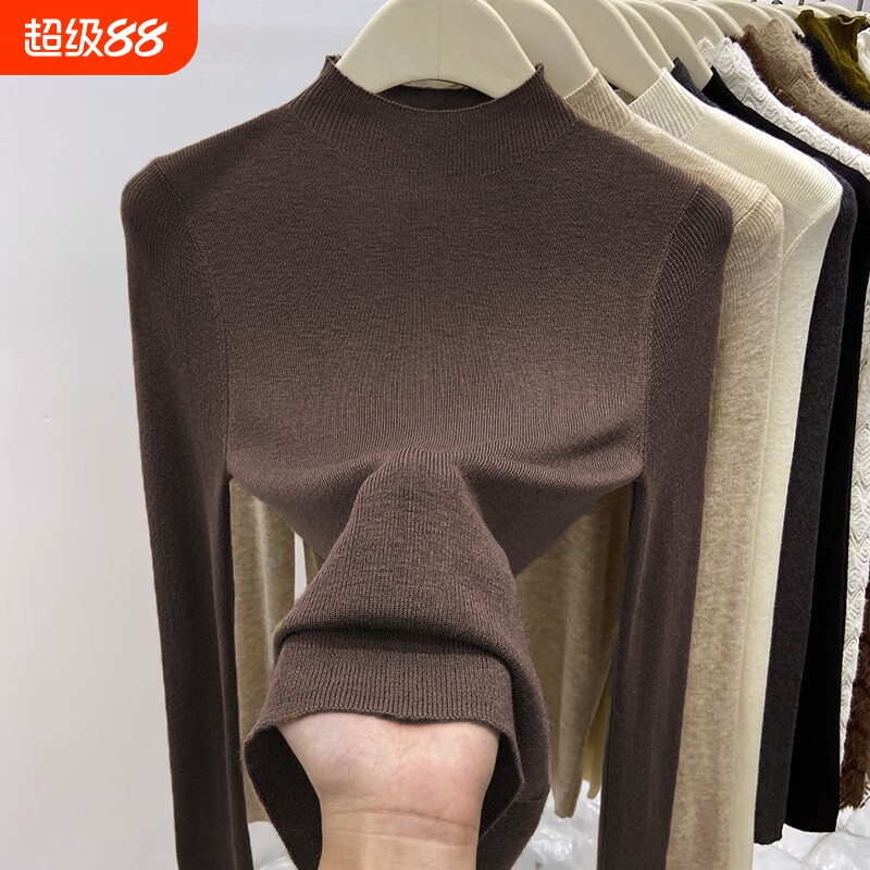 白色打底衫女士春秋季2026新款高级感黑色半高领毛衣内搭针织上衣