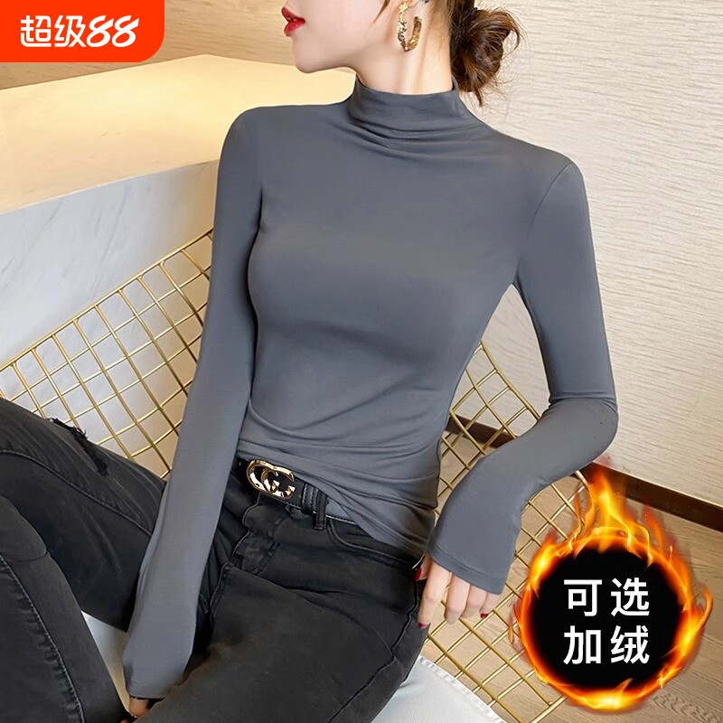 莫代尔打底衫高领女秋冬季内搭新款洋气紧身加厚保暖黑色长袖上衣