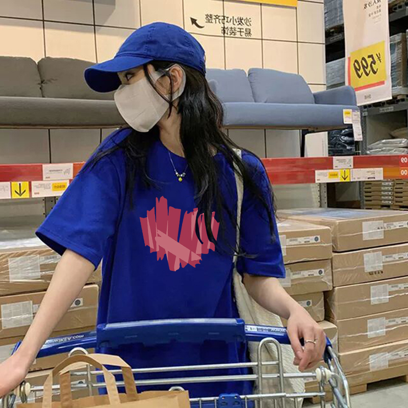 克莱因蓝纯棉质感短袖t恤女夏季美式复古设计感小众潮牌女装上衣