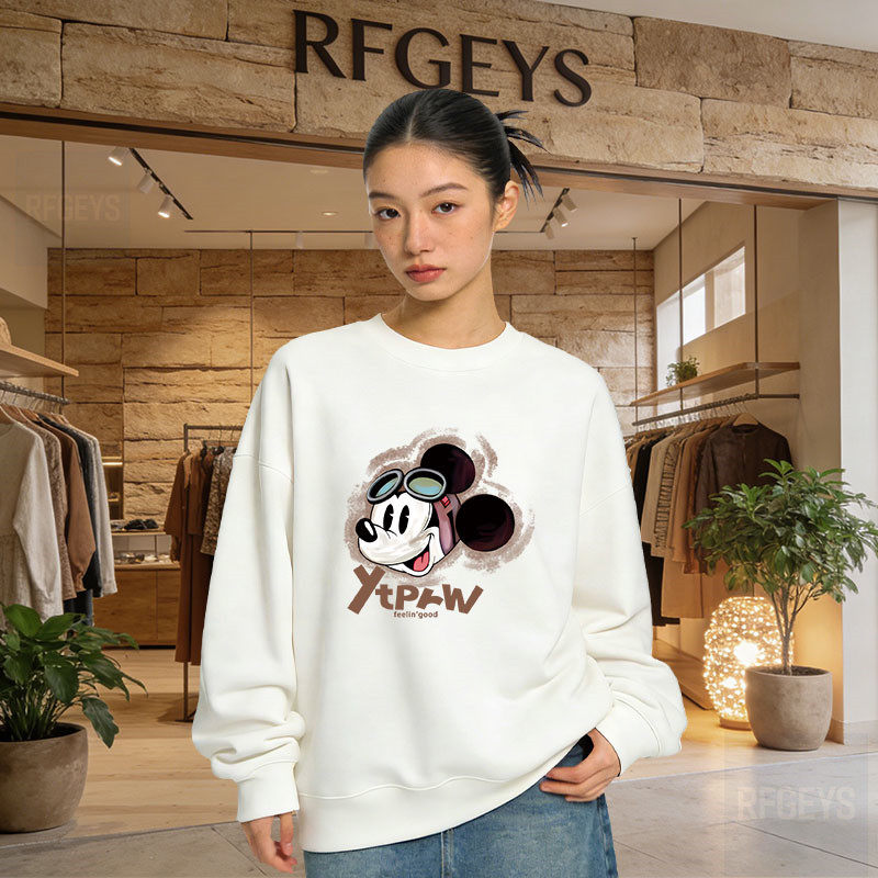 秋冬大码圆领米奇宽松卫衣慵懒风300斤潮流上衣美式爆款潮牌女装