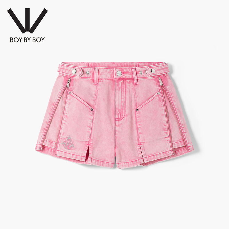 BOY BY BOY商场同款潮牌女装2025夏新品稍宽松藏肉粉色牛仔短裤