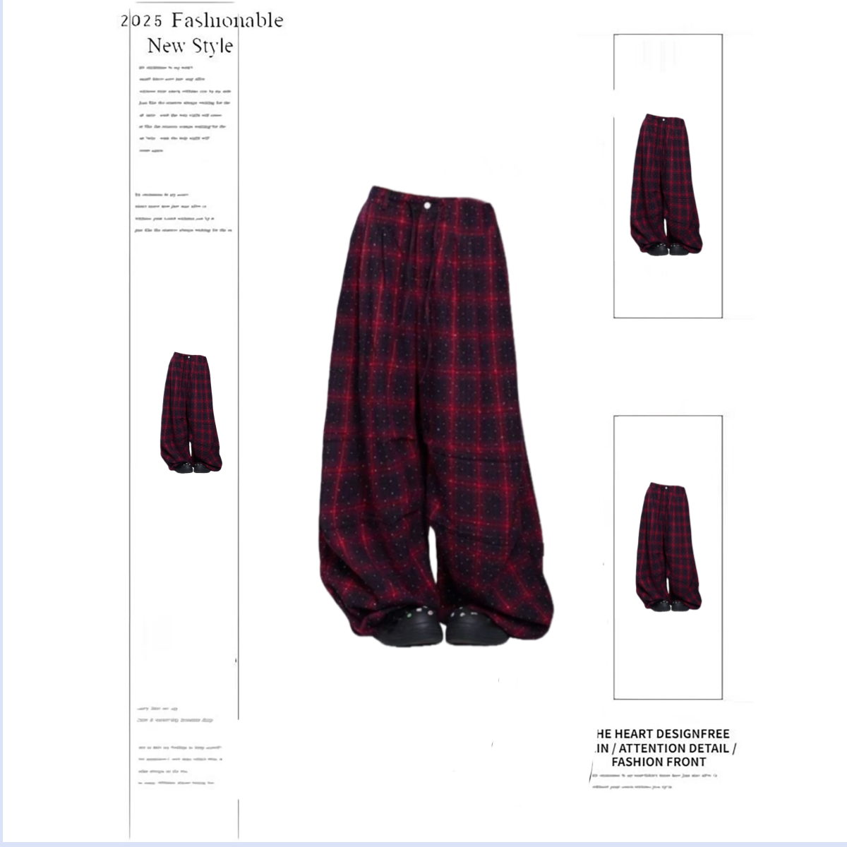 新款潮牌女装"闪钻红格子"新款设计感跳舞嘻哈直筒潮流春季运动裤