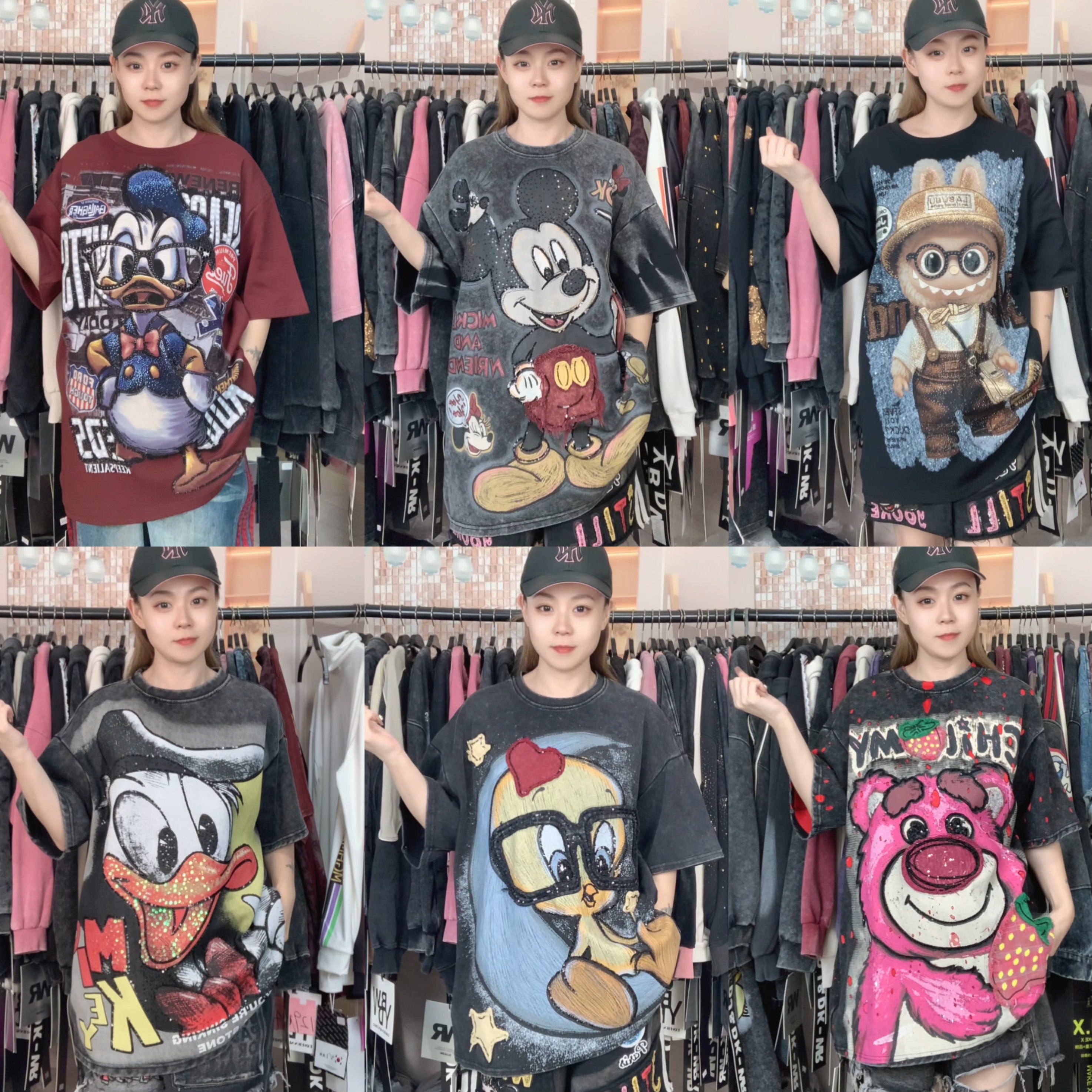 正品秒杀秋冬2025新款欧货潮牌女装时尚重工宽松大版减龄短袖T恤