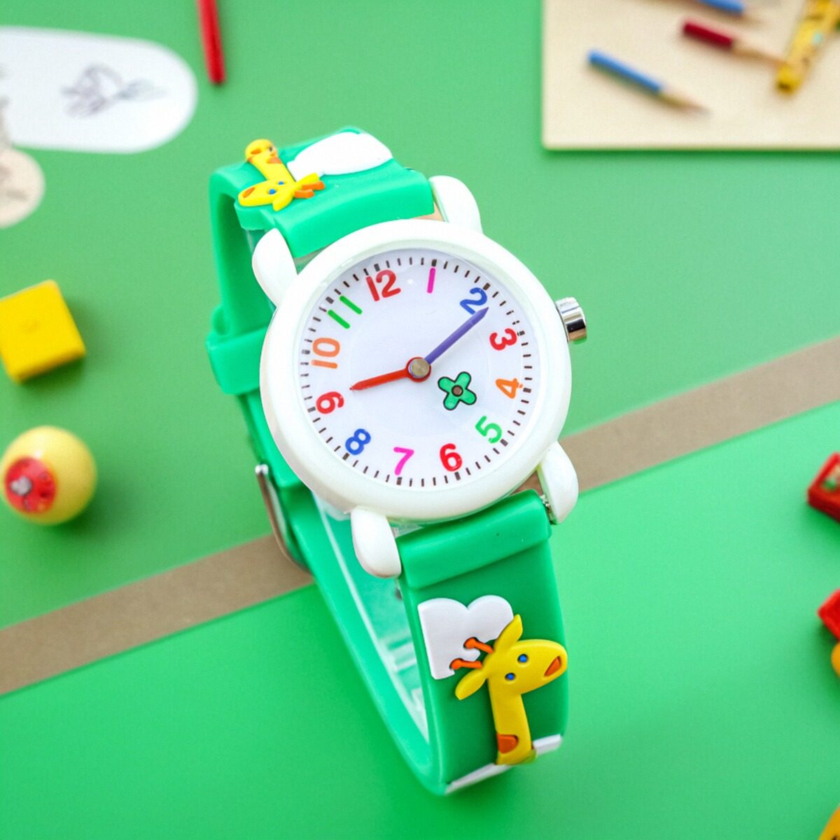 可爱卡通儿童手表长颈鹿女童防水电子表小朋友学习时间休闲石英表